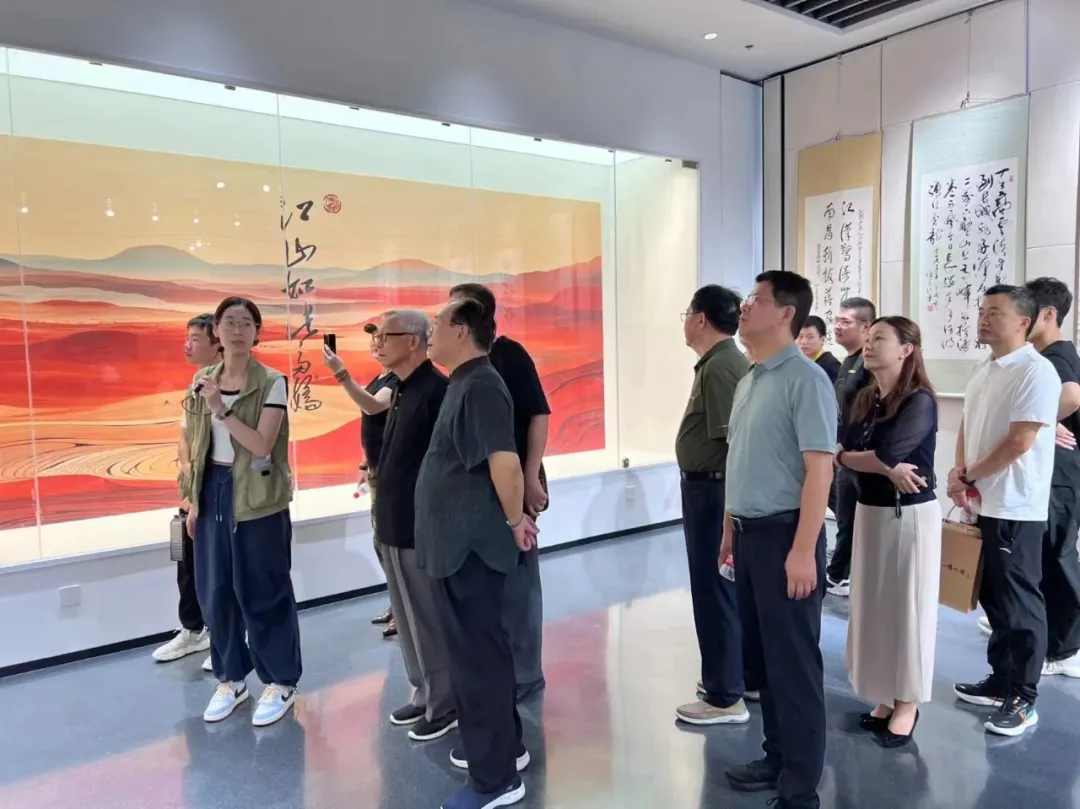 2024年8月1日上午,经开区文化活动中心一楼公共展厅内,人头攒动,气氛热烈,吸引了众多领导和市民前来参观。中国红色书法家协会主席袁伟,副主席熊自仁、李汉文等出席了此次活动,与广大市民一同观展。