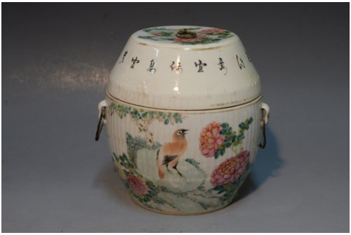 花鸟纹浅绛彩四系盖罐